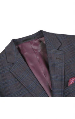 (42R, 44L) Wool Blend Plaid Pattern Regular Fit 2 Button Blazer In Grayish Brown